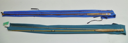 AN ERIC PEACE SPLIT CANE ROD #4, 7 in turquoise cloth bag and a DENNIS BAILEY HAND-MADE TWO PIECE TONKIN BAMBOO ROD (made for the owner in 1979) 78 with spare tip, #4 The Viscount Grey/Curtis in blue cloth bag (2)