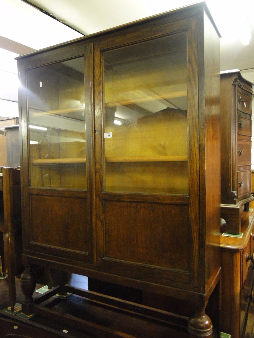 An oak 2-door bookcase.