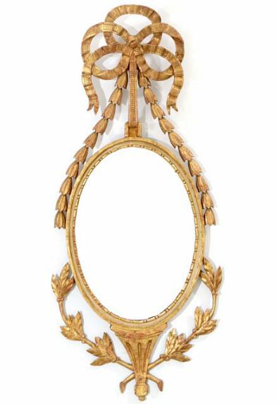 An oval Danish Louis XVI style giltwood and carved mirror.