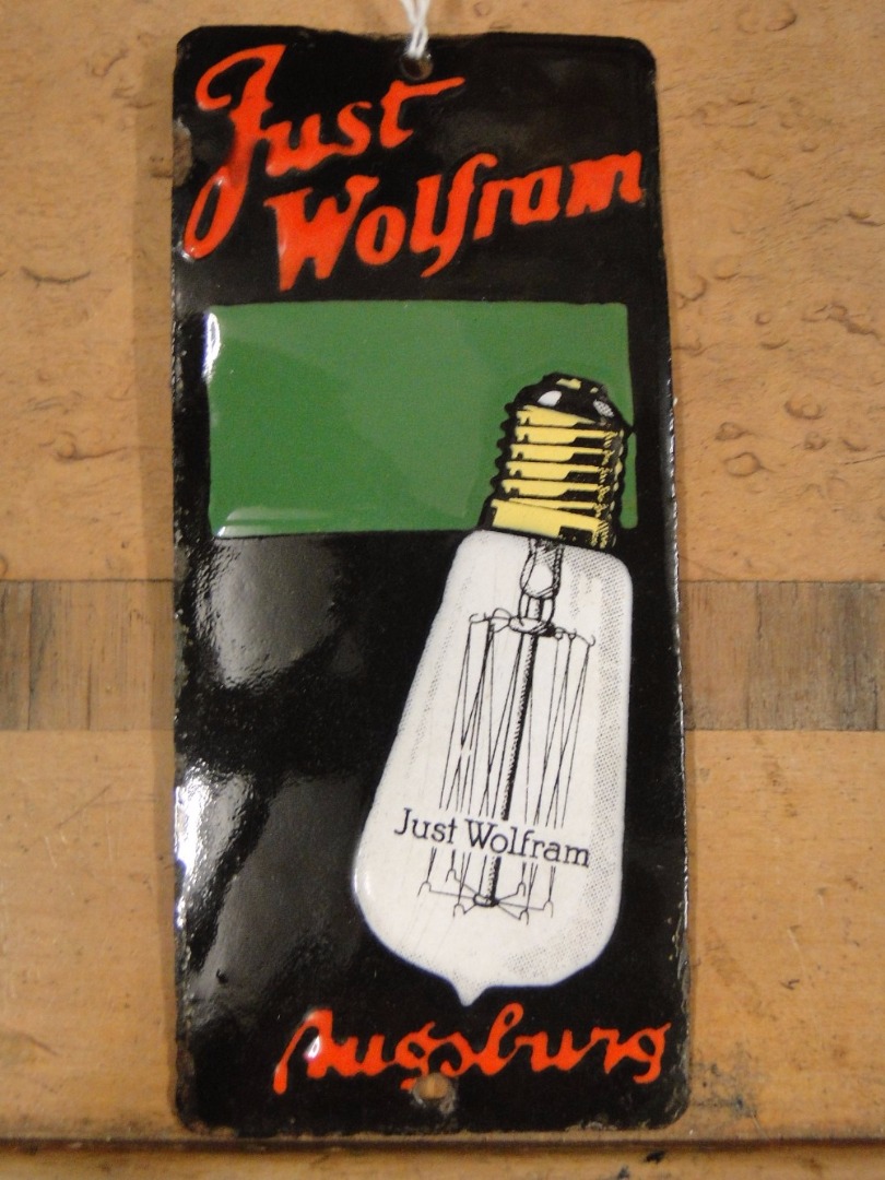 Antique enamel ''Just Wolfram'' advertising enamel sign