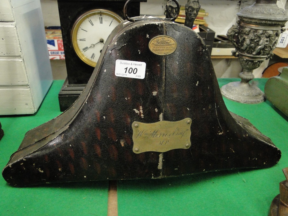 Antique hat tin inscribed ''W M. Morris Esquire, MP.''