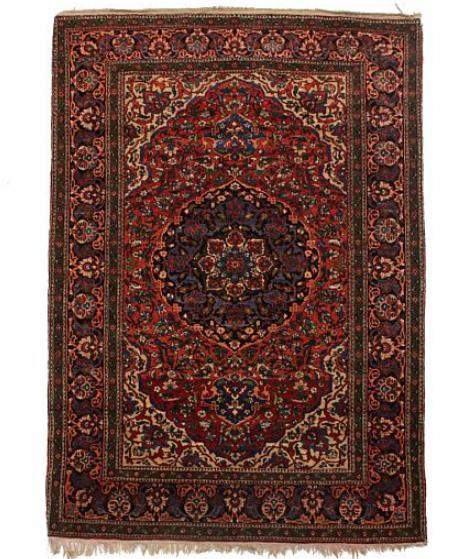 Antique Isfahan carpet, medallion design on ivory base with flowers, palmettes and foliage