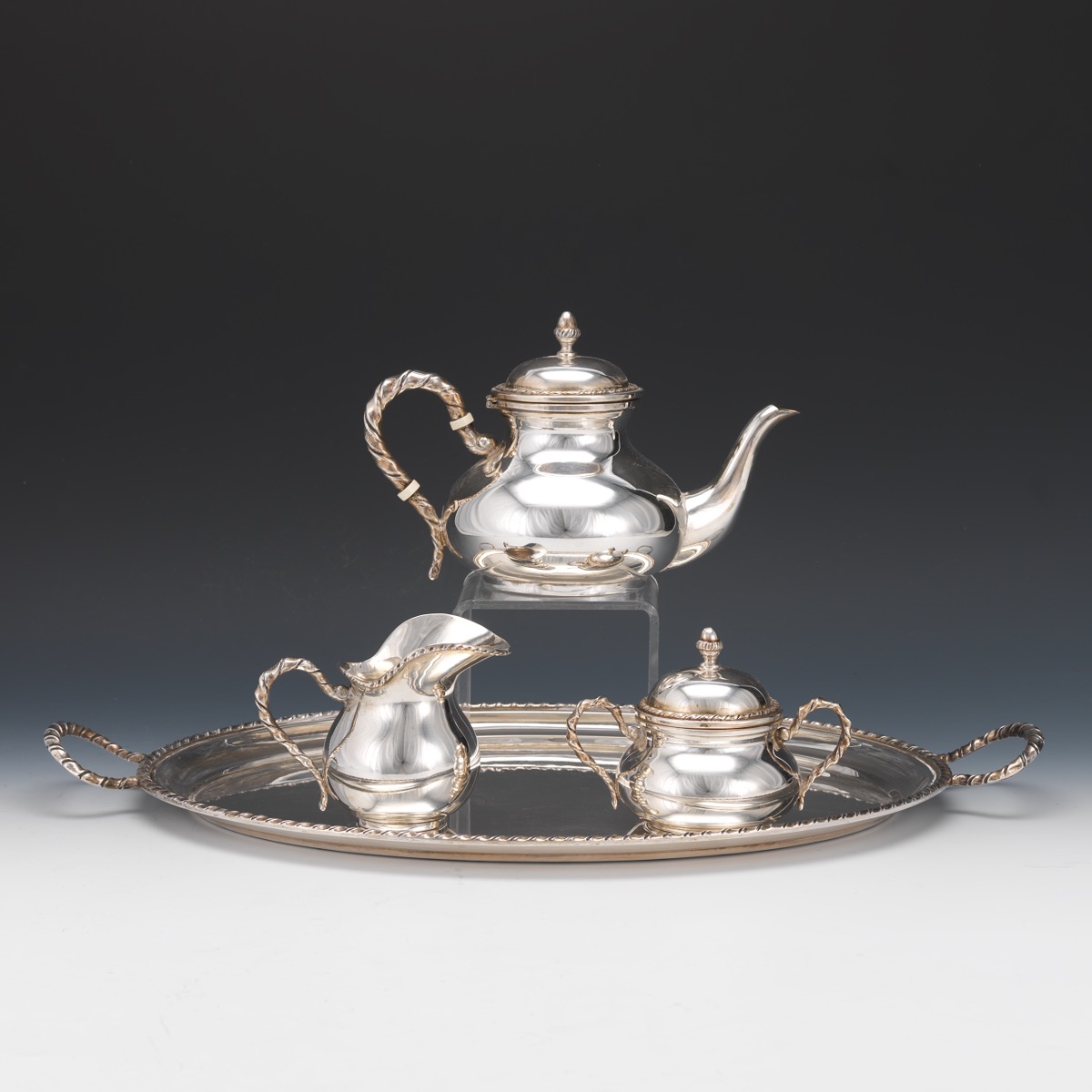Argenteria Malinverni di Umberto Malinverni 800 Silver Tea Set, Milan 20th Century Argenteria Malinverni di Umberto Malinverni Italian 800 silver four piece tea set made in Milan, 20th Century. Consisting of a double handled oval tray 21" x 21 ½"; a