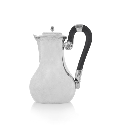 VERSATOIO IN ARGENTO, PARIGI, J.C.B.ODIOT, 1809-1819, piriforme liscio con manico in ebano, cimatura a pigna, stemma araldico inciso; usure. g 540