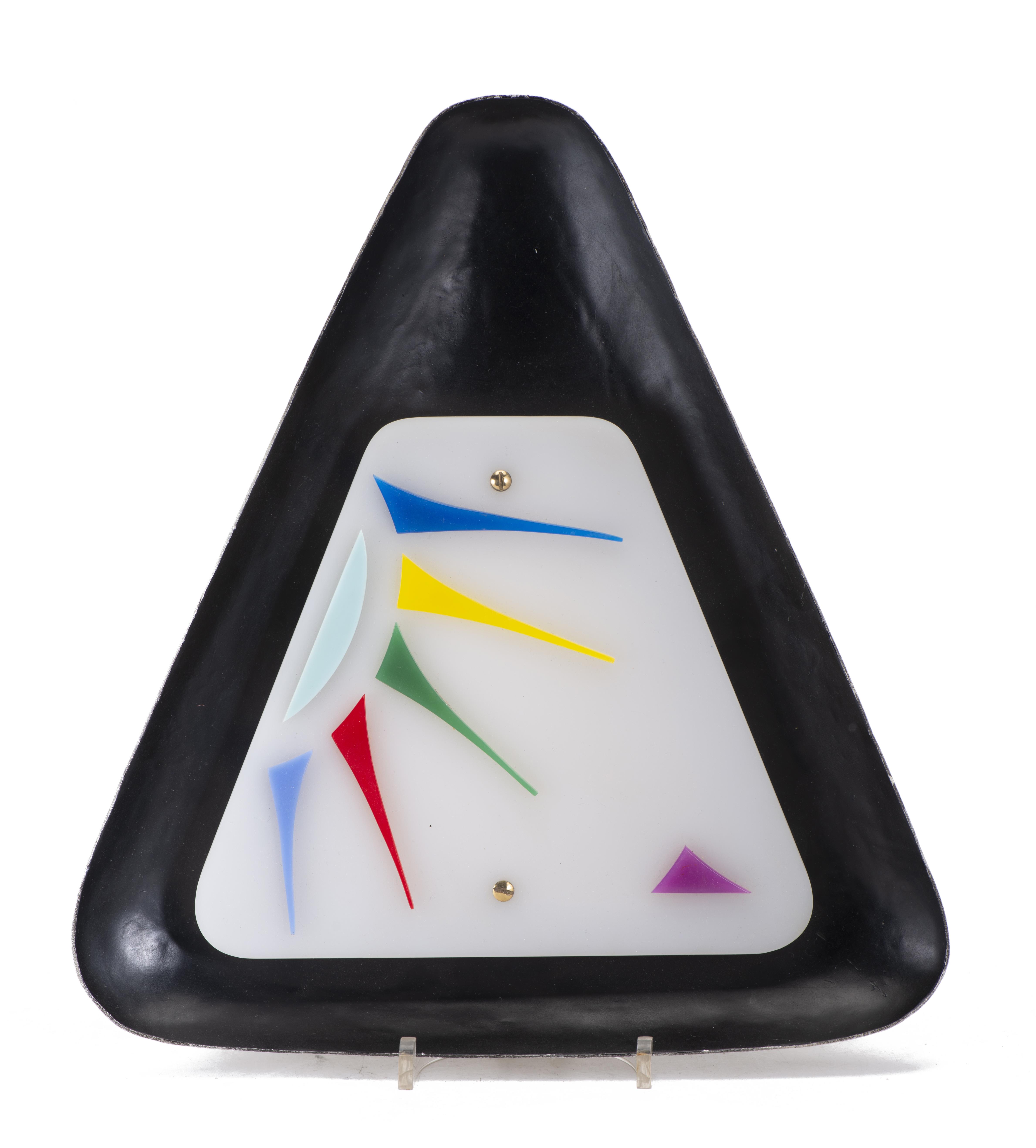 Arredoluce Monza, applique des années 50 triangulaire en métal, verre et plastique coloré. Prototype.