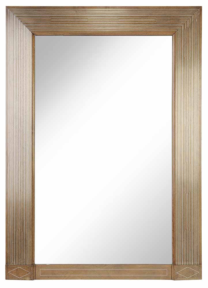 Pewter-Inlaid Walnut Mirror 20th century, rectangular form with metal inlays
