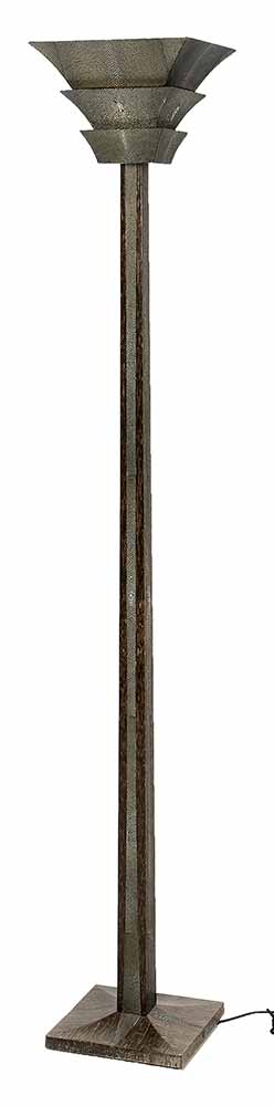 Floor Lamp Atelier Viollet, circa 1998, stepped shagreen-covered shade, tapered column-form support in square base