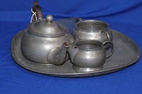 comprising teapot, sugar, cream, pot stand and tray (5)