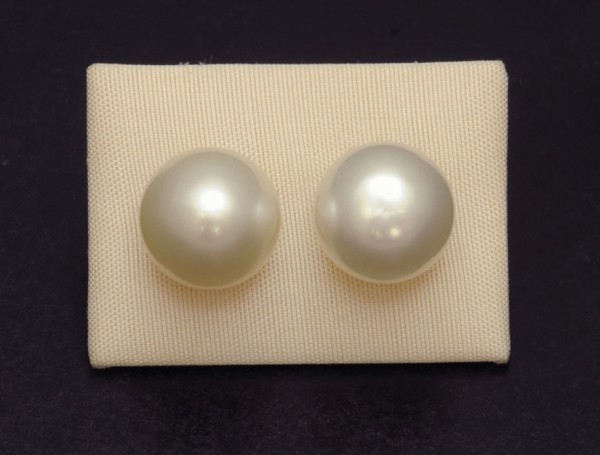Australian pearl earrings 11-12 mm. diameter mounted in yellow gold 18 K. Closing pressure.