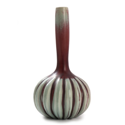 Royal Copenhagen stoneware vase decorated with oxblood glaze with green elements.