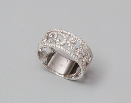 Bague anneau dessinant une dentelle d'or gris, 750 MM, recouverte de diamants, total: 0,50 carat environ, taille: 54, poids: 4,5