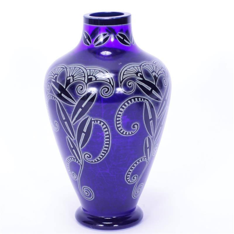 Beyermann & Co. Haida Glass Czech/Bohemian Art Deco Vase Cobalt Blue