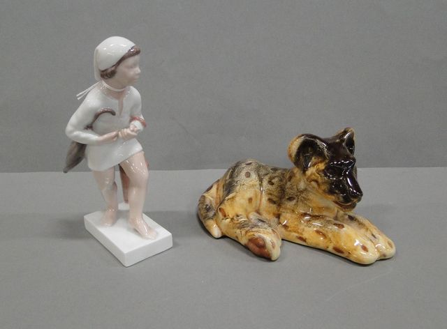 Bing & Gröndahl figurin, John Blund 1:a sortering H18cm samt Mari Simmulson, Ekeby, leopard H10cm L20cm, ett öra med lagning