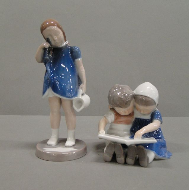 Bing & Grondahl figurines 2st, reading children and girl with milk jug
