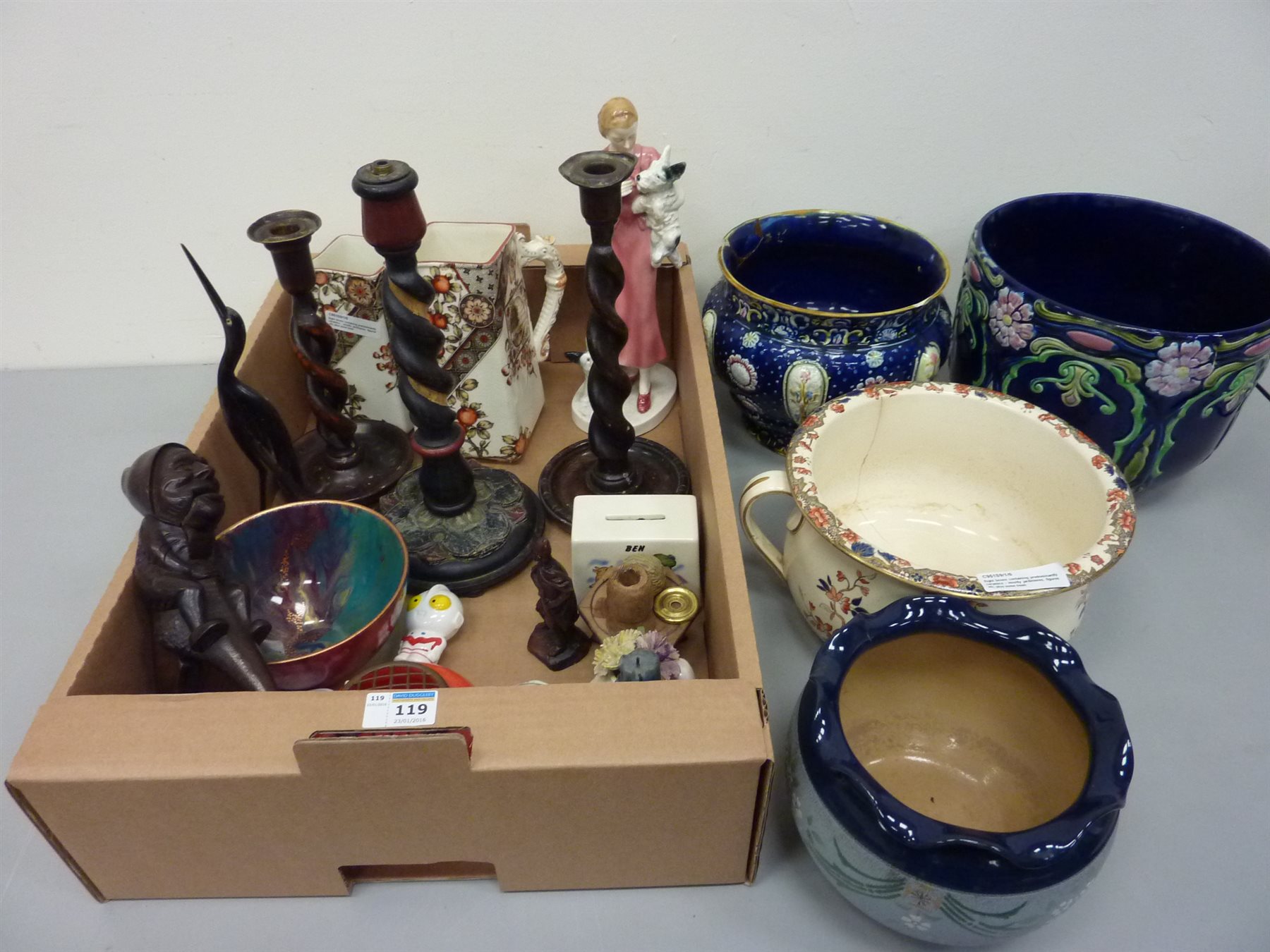 two Ridgways 'Dado' pattern jugs, jardinieres, and other decorative ceramics in one box