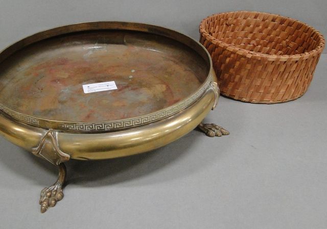Blomsterställ, mässing på fyra fötter, England omkring 1900