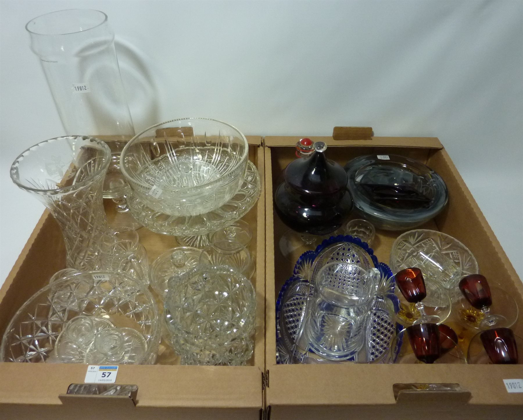 Bohemian cut crystal dish with blue overlaid decoration, Swedish Kosta Boda art glass bowl, handmade sweet jar, crystal bowls, c