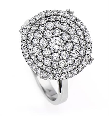 Brillant-Ring WG 750/000 mit 89 Brillanten, zus. 1,33 ct TW/VS-SI, RG 55, 6,8 g