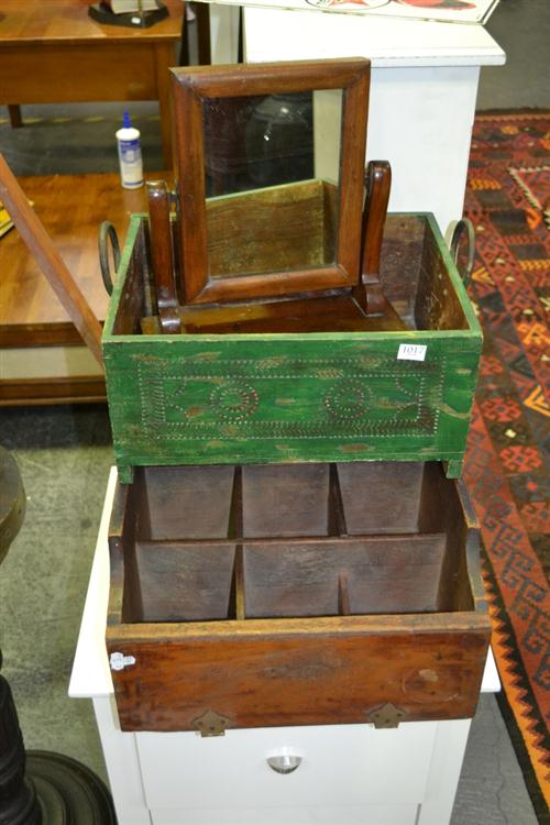 Callar Drawer, Green Painted Box with Handles & Victorian Toilet Mirror