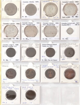 Canada, plastic sheet with decimal coins and tokens, in total 18 pcs in varying condition