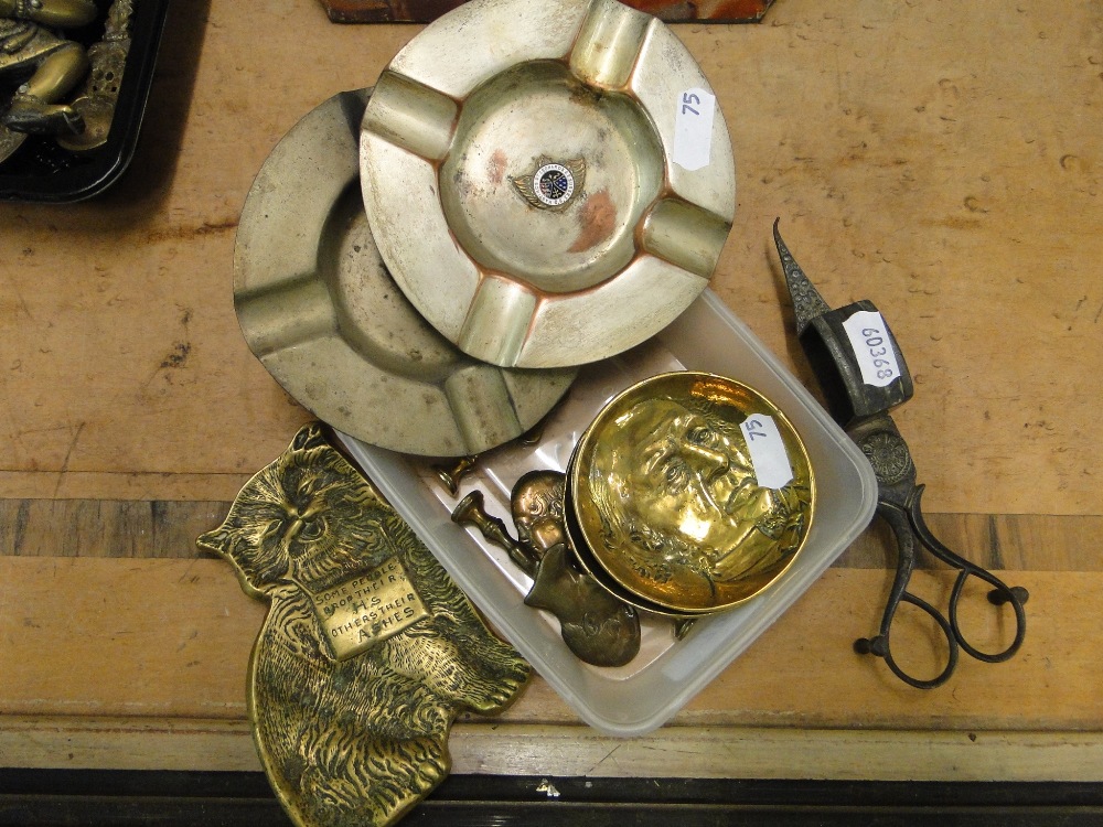 Candle snuffer, Hastings, St. Leonards and East E. Sussex CC ashtrays, pipe tamps, etc.