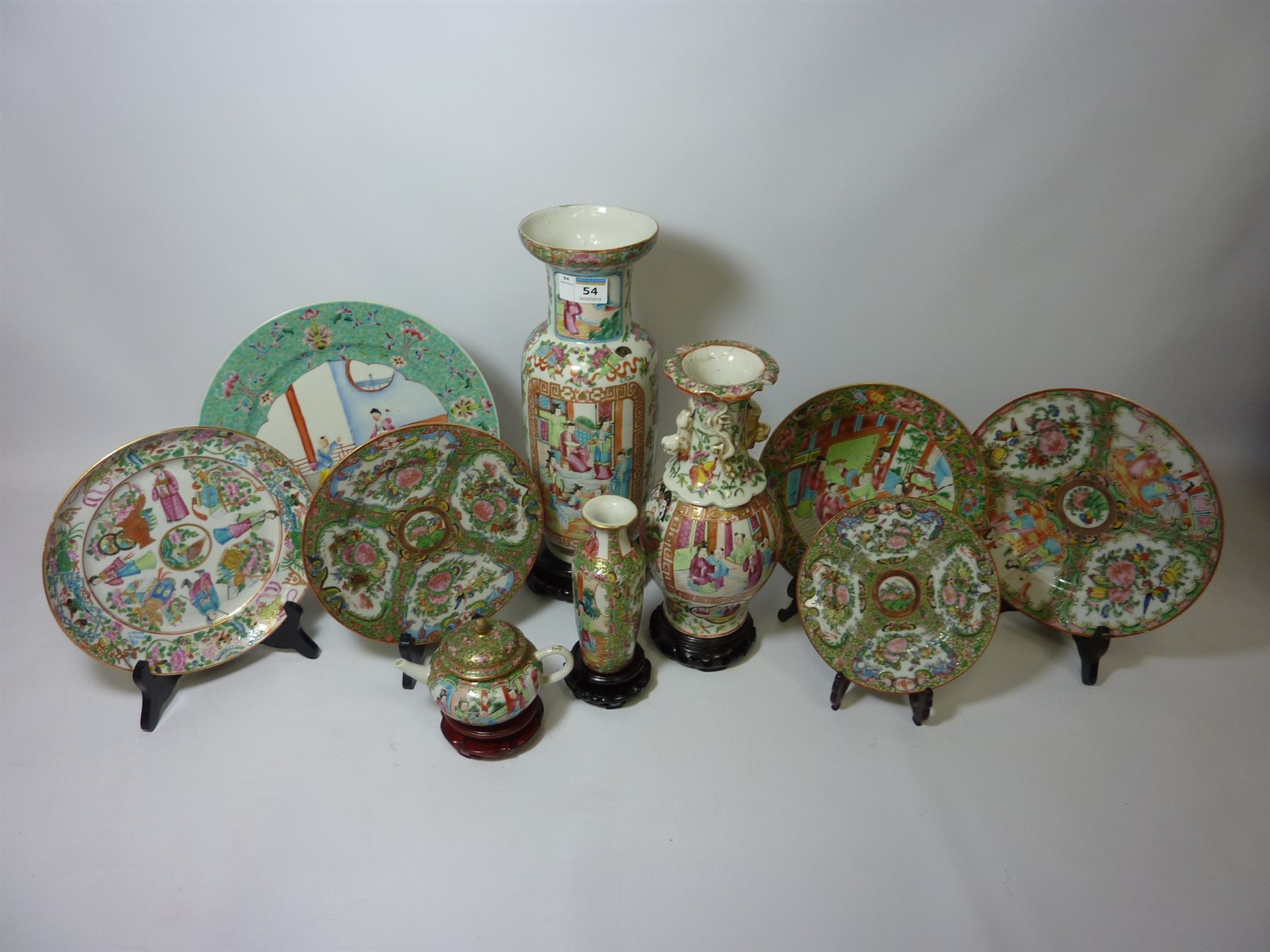 Cantonese famille rose vase H30cm, another similar and other 19th century Cantonese decorative ceramics