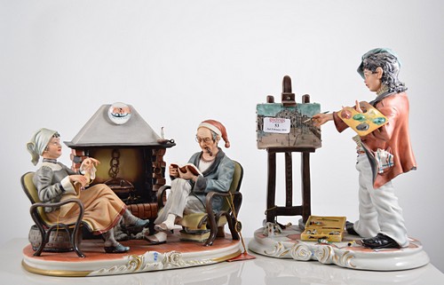 Capodimonte porcelain model ''The Artist'', height 29cm, and four other Capodimonte porcelain groups, (5).