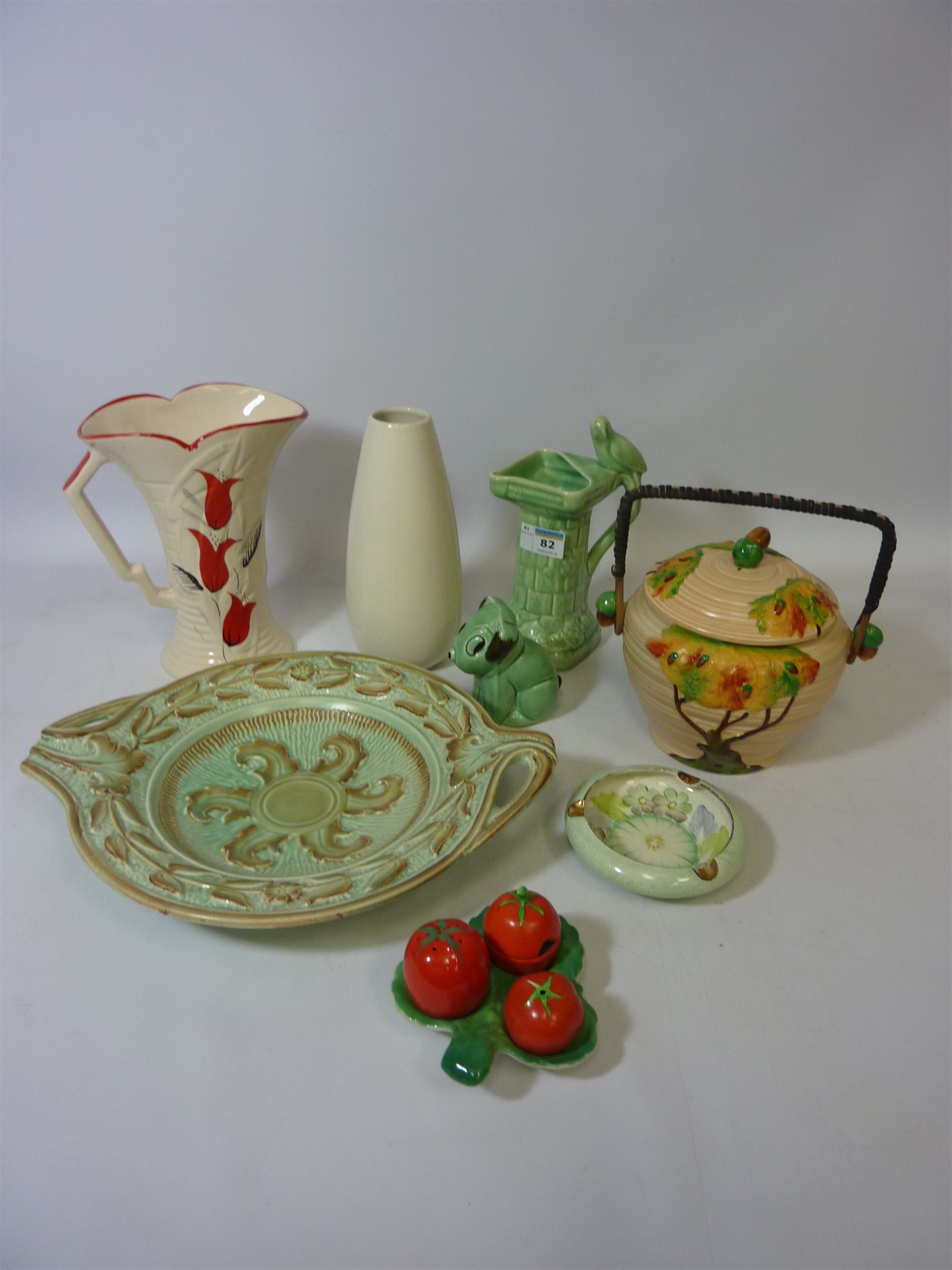 Carlton ware biscuit barrel, Sylvac, Gray's and other mid 20th century pottery