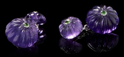 Carved amethyst flower cufflinks centered on tsavorites 750 gray gold