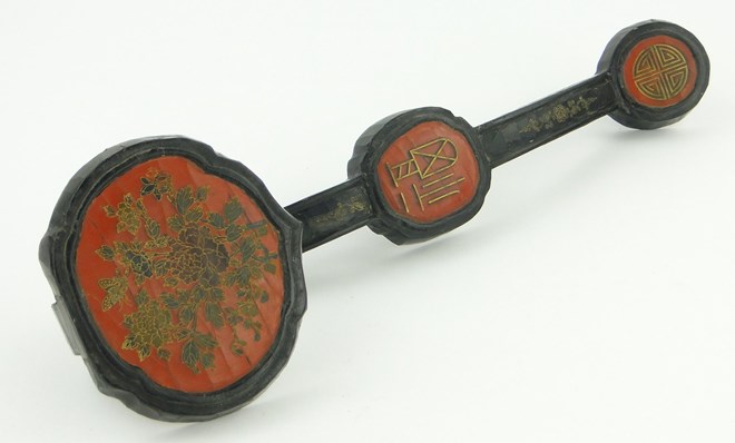 Carved and lacquered wood ceremonial stick