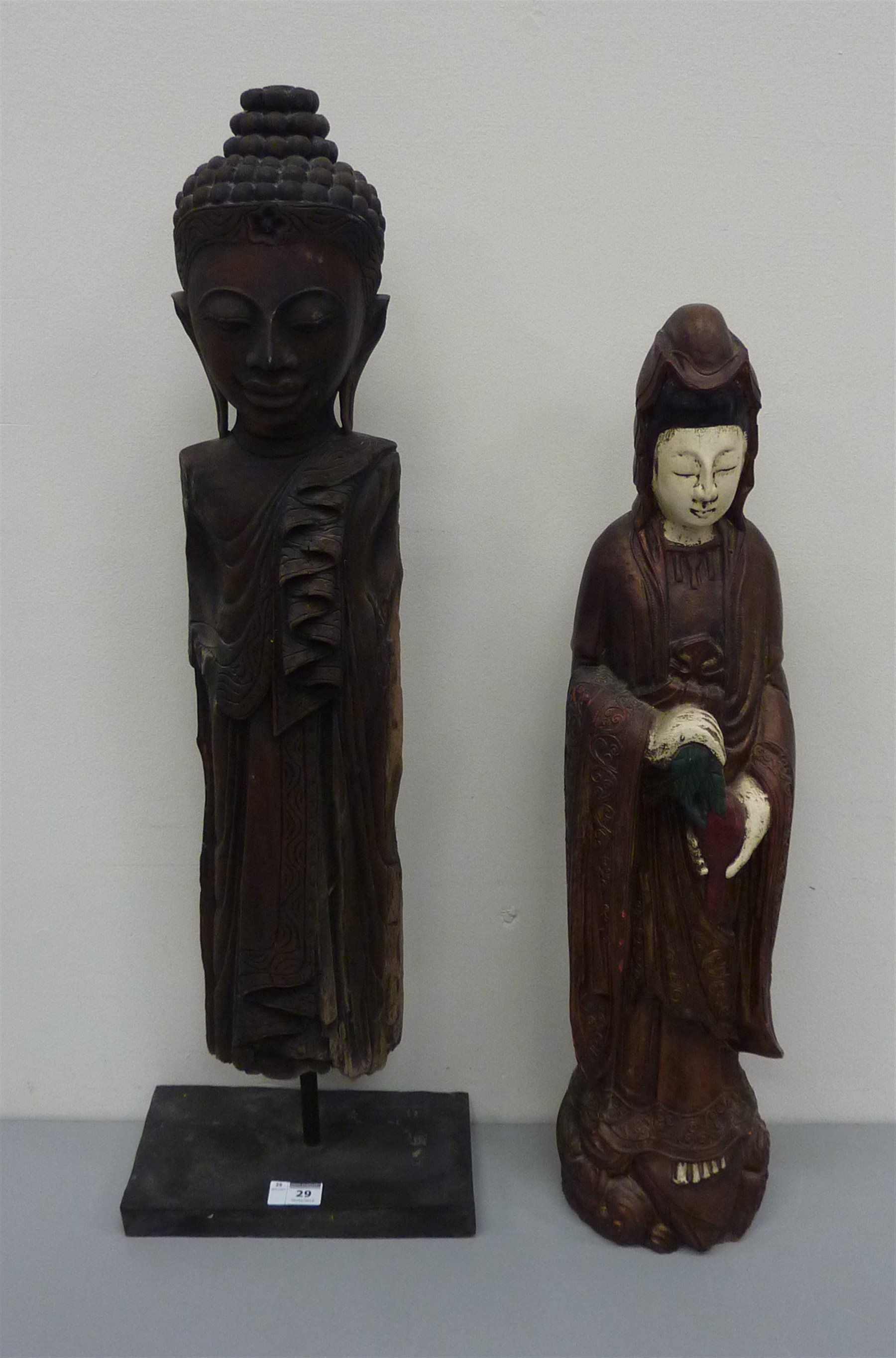 Carved wood figure of Buddha H79cm on plinth and a carved wood Chinese deity