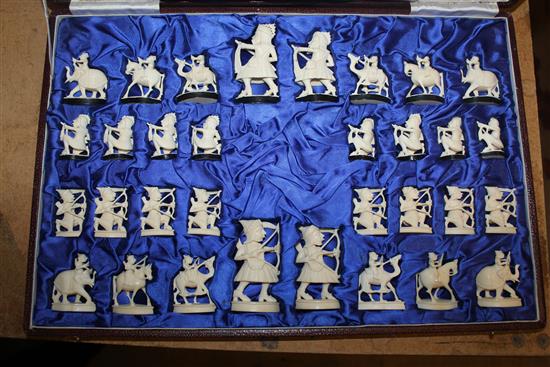 Cased Burmese ivory chess set