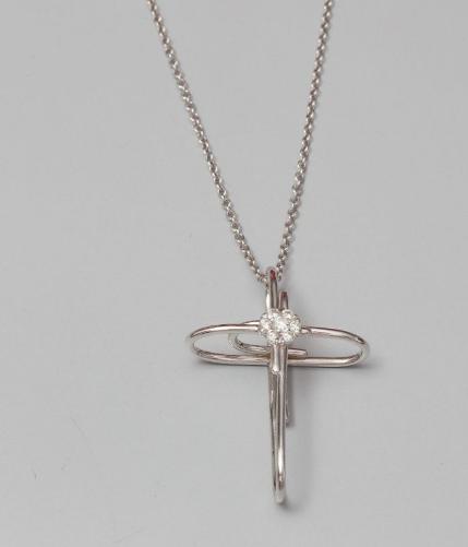 Chain and cross stylized white gold, 750 MM, centered brilliant, weight: 7,92gr. gross