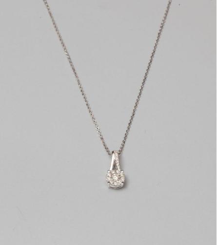 Chain and pendant in white gold, covered with diamonds, weight: 1,9gr. gross