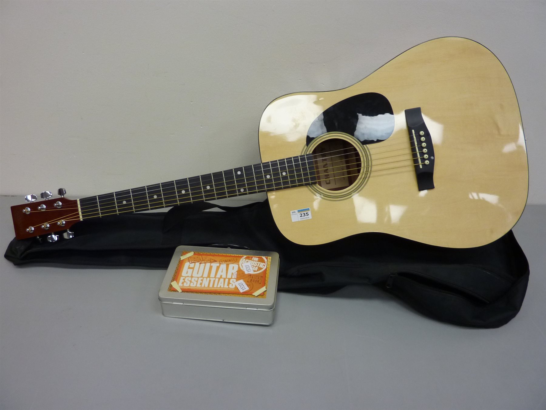 Chantry acoustic guitar, model no. 3077, with soft case and accessories