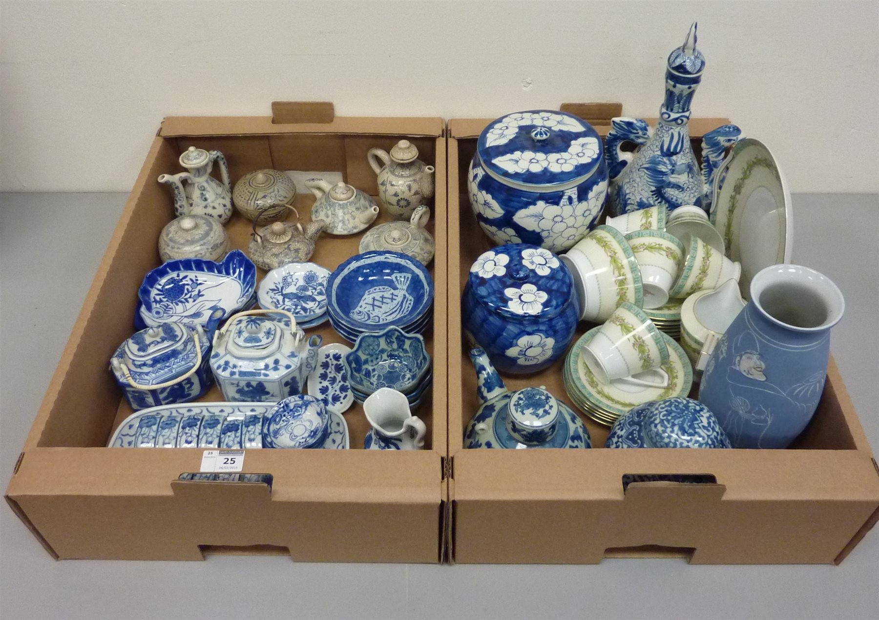Chinese blue and white pottery and a Japanese Noritake tea set in two boxes