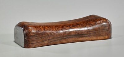 Chinese hardwood pillow; of rectangular form, with subtle slope to center; polished to showcase patterning; L: 11 1/2" (approx.)