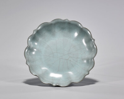 Chinese Song-Style Celadon Glazed Porcelain Foliate Dish