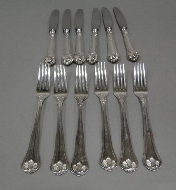 Chor, besticksuppsättning, Sachsisk, silver Danmark, 6st gafflar L18cm