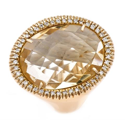 Citrin-Brillant-Ring GG 750/000 mit einem feinen oval fac. Peridot 20 x 15 mm in sehr guter Farbe und Brillanten, zus. 0,20 ct W/SI, RG 60, 13,0 g
