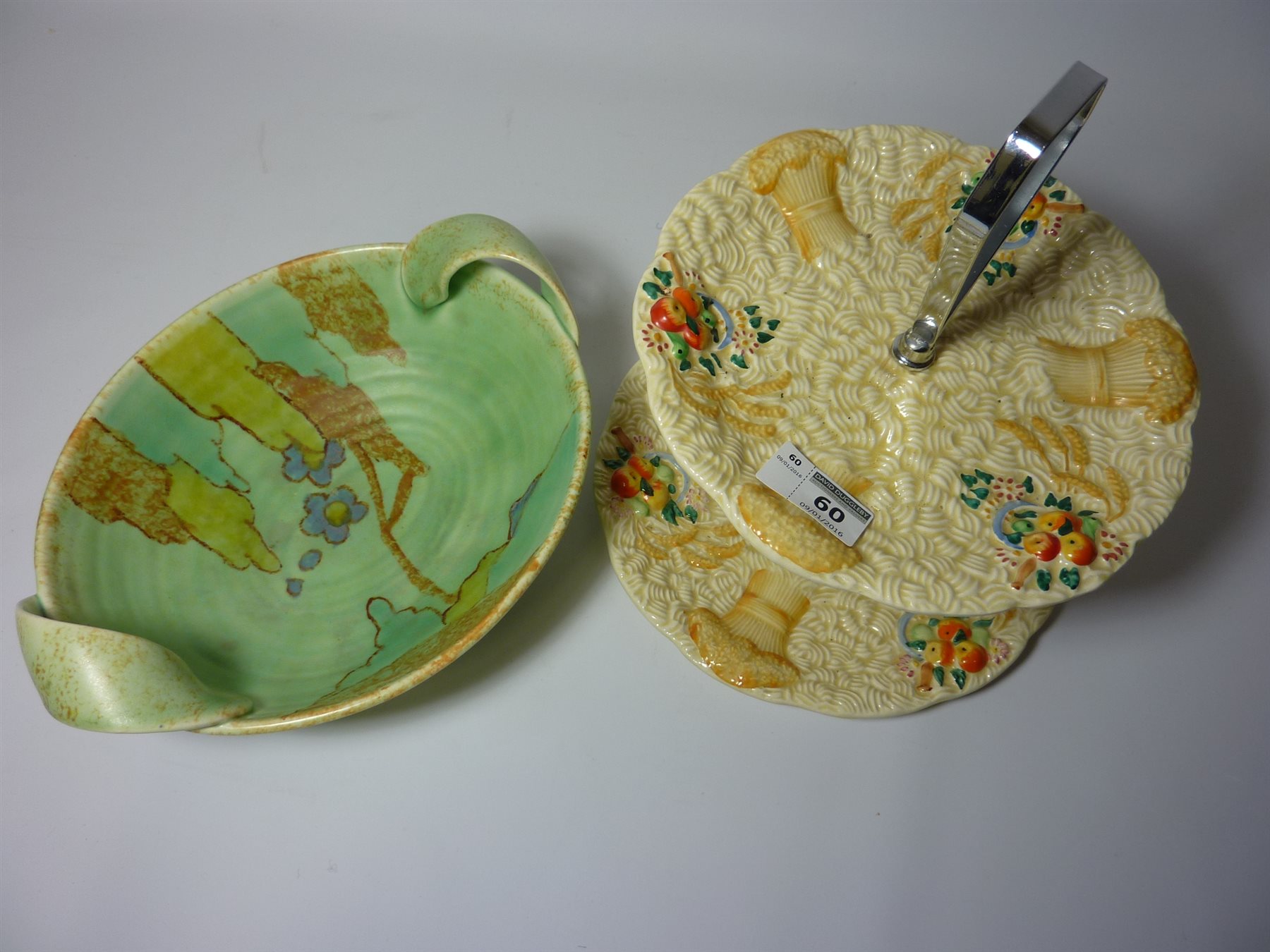 Clarice Cliff 'Harvest' pattern two tier cake stand and a Crown Devon bowl