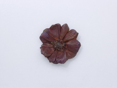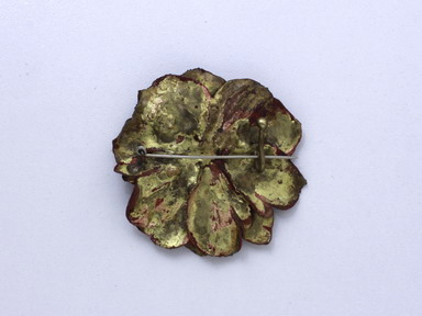 Claude LALANNE Broche en cuivre à patine brune stylisant une anémone. Non signée. Diam: 6 cm.Claude Lalanne transforme des éléments naturels tels que des feuilles, des fleurs ou des fruits en métal. Elle opère par galvanoplastie dans le but de les im