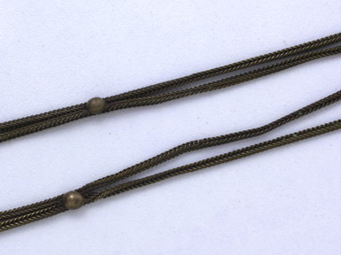 Collier composé de 2 chaînes colonnes en métal, décoré de 2 feuilles de rosier en cuivre à patine brune faisant fermoir et reten