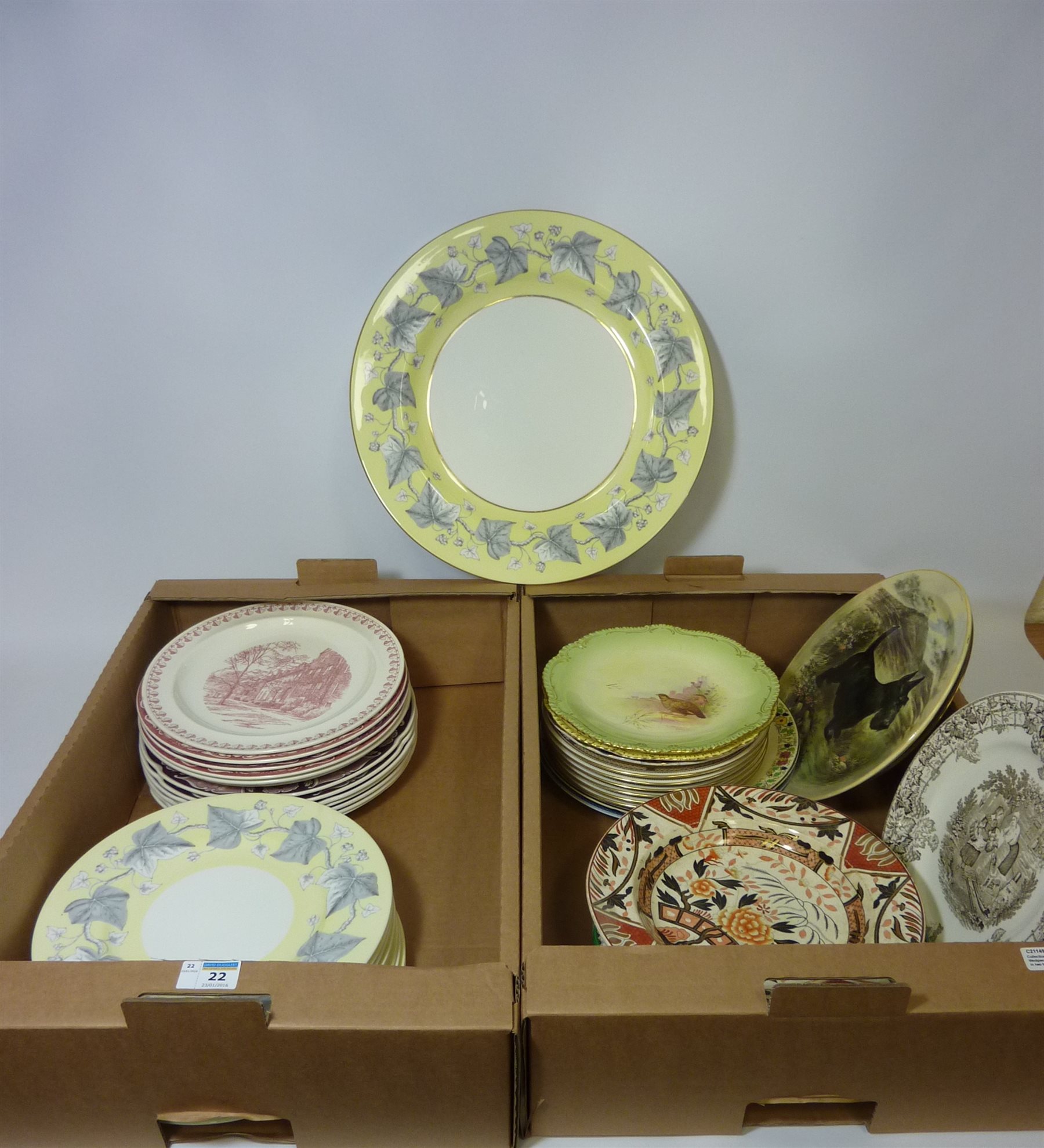 Collection of Royal Doulton, Wedgwood, Coalport and other cabinet and dinner plates in two boxes