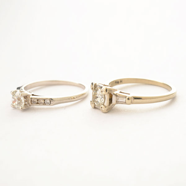 Collection of Two Diamond, Platinum, 14k White Gold Rings.