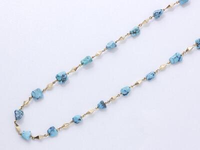 Collier en or 750 millièmes, composé d'un rang de perles baroques de turquoise matrix alternées de motifs bipyramide. Il est agrémenté d'un fermoir anneau ressort. Poids brut: 20.70 g. Long: 57 cm.