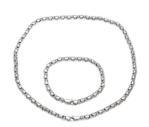 Collier und Armband WG 585/000 mit Karabiner, L. 43 und 19 cm, 35,6 g