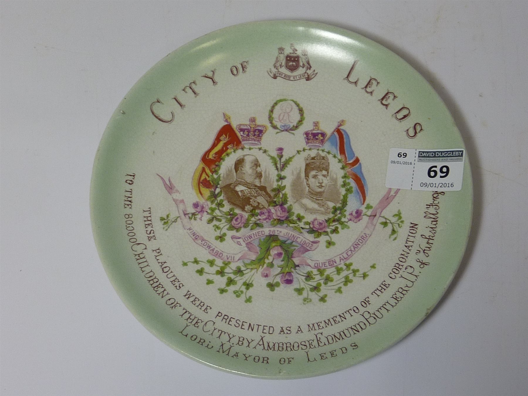 Commemorative Ware - 'City of Leeds' coronation plaque bearing inscription