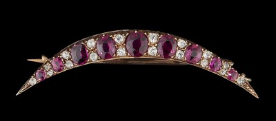 Crescent Moon brooch set with rubies (approx 1.8 ct) and diamonds