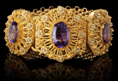 Cuff bracelet set with three oval amethysts (approx 15 ct)